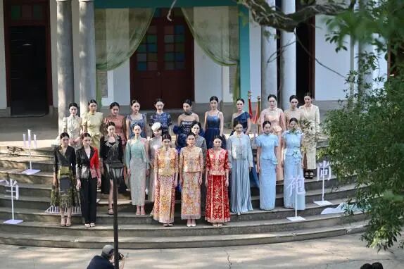 9月5日,武岭幽胜景点百年古树下,一场以“百花齐放”为主题的大型情景剧秀演拉开时尚周序幕。甬剧吟唱、红帮服饰秀、现代旗袍展演交织成一幅流动的百年服饰画卷,再现旗袍从传统走向当代的美学演进。